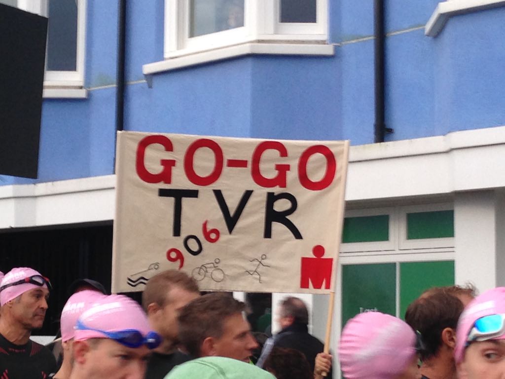 I knew that Bron and family waiting in Tenby would be concerned about what had happened with my pace and as I saw them as I entered transition and made it clear what was wrong. I’ve got to say that their support was absolutely fantastic and they had the best supporter’s banner for me in Tenby! Despite their feeling of comfort hiding onside the coffee shops around Tenby, I know their concern and anxiety from not knowing what had gone wrong was just as hard to deal with.