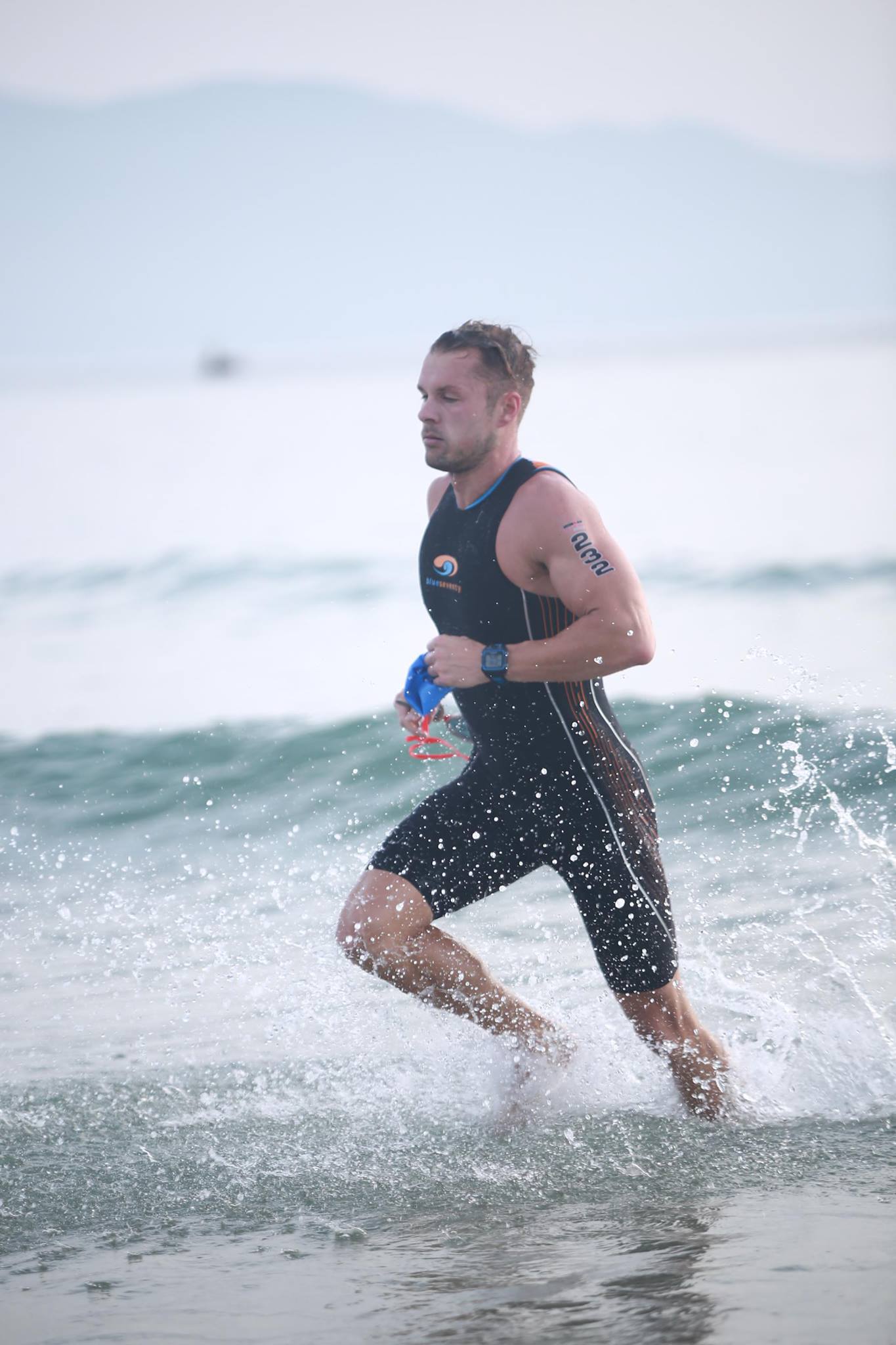 On arrival to T1 and the swim start athletes were greeted with a very reserved atmosphere where last minute adjustments were made to bikes and equipment as a collaboration of songs from Hans Zimmer and John Williams from War Films were played over the sound system. The tension was mounting and at one point it became a little too much until i saw Mark Kilner in his wetsuit!