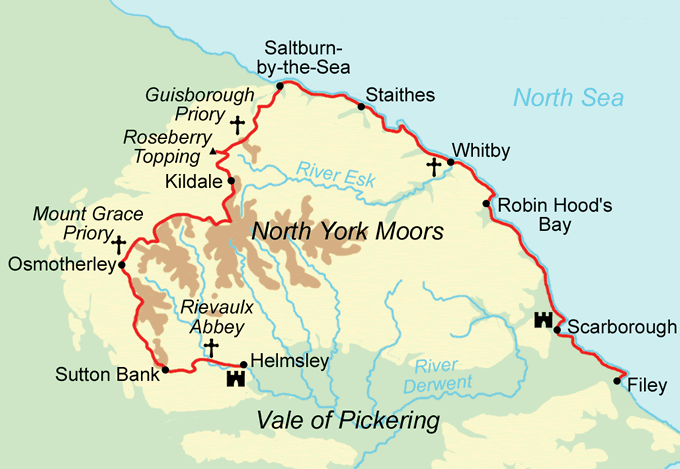 The race can be broken down into 3 sections: the coastal path from Filey to Saltburn (54 Miles); Saltburn to Osmotherley (36 miles with most of the ascent); Osmotherley to Helmsley (22 miles).